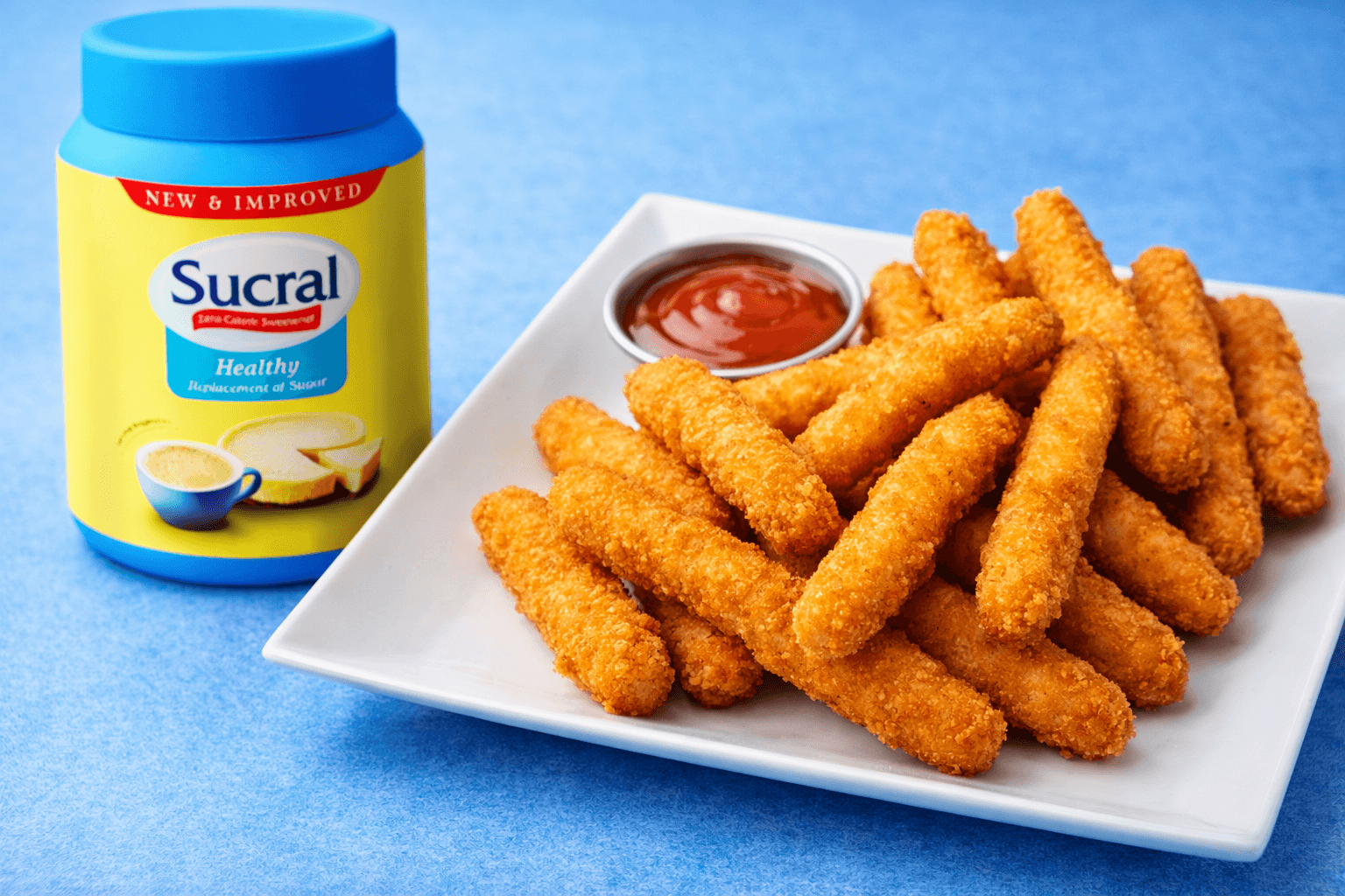 Rite Salt enhances the seasoning of the chicken mixture while Sucral adds a subtle balance to the spices — making these crispy fries flavorful without the extra calories from sugar or excess sodium.